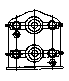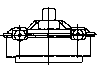 單級(jí)三環(huán)傳動(dòng),二高速軸位于低速軸兩側(cè),各軸豎置,箱體平置座裝。 |