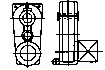 組合二級(jí)傳動(dòng),高速級(jí)錐齒輪傳動(dòng)與低速軸垂直,余同BJ。 |