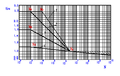 圖1 彎曲疲勞壽命系數(shù)KFN圖