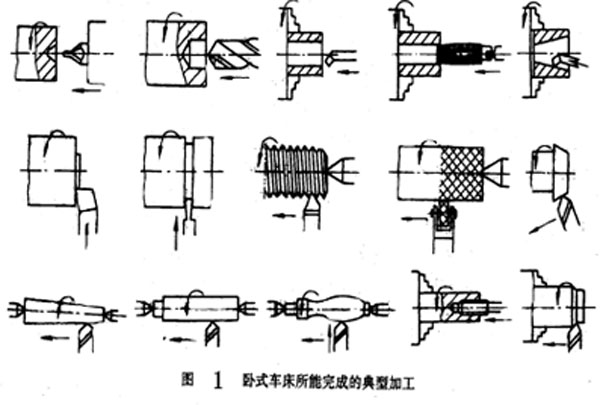CA6140型臥床的工藝范圍很廣,它適用于加工各種軸類、套筒類和盤類零件上的回轉(zhuǎn)表面,如車削內(nèi)外圓柱面、圓錐面、環(huán)槽及成形回轉(zhuǎn)面;車削端面及各種常用螺紋;還可以進(jìn)行鉆孔、擴(kuò)孔、鉸孔、滾花、攻螺紋和套螺紋等工作圖1