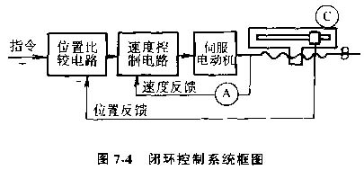 閉環(huán)控制系統(tǒng)框圖見(jiàn)圖7-4。圖中A為速度測(cè)量元件,C為位置測(cè)量元件。這類機(jī)床的優(yōu)點(diǎn)是精度高、速度快,但是調(diào)試和維修比較復(fù)雜。