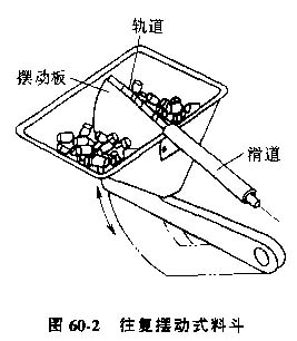 2) 擺動(dòng)式料斗,圖60-2為一種典型的擺動(dòng)式料斗結(jié)構(gòu)。擺動(dòng)板由凸輪或曲柄驅(qū)動(dòng),零件隨軌道擺動(dòng)到與滑道一直的威勢(shì)時(shí),方位正確的將進(jìn)入滑道,不正確的回落到料斗。
