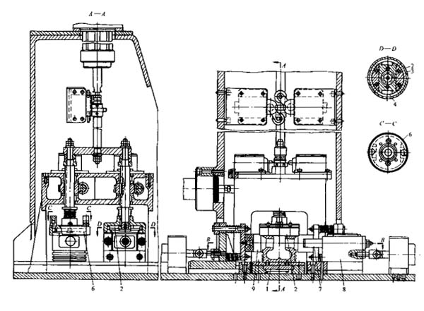 在一個(gè)托架上擰松螺帽、托架向上提升,將裝配件送到定位機(jī)構(gòu)和雙主軸螺帽的扳手處。主軸的旋轉(zhuǎn)使螺帽扳手下降,將連桿頭螺帽套住并擰松6~8,再用專(zhuān)用裝置將連桿蓋分開(kāi)放下,利用擺桿型輔助運(yùn)輸器,將裝配件從線(xiàn)上轉(zhuǎn)移到有八個(gè)工位的回轉(zhuǎn)式貯料裝置中。待四個(gè)裝好連桿活塞的機(jī)構(gòu)裝在貯料準(zhǔn)固執(zhí)的一段導(dǎo)料板上之后。貯料裝置回轉(zhuǎn),下一段料板移近。貯料裝置裝滿(mǎn)后,裝配機(jī)構(gòu)由裝配單元計(jì)數(shù)繼電器發(fā)出信號(hào),停止送進(jìn)。