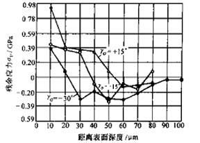 圖3-6 端銑時前角對殘余應(yīng)力的影響