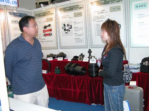 十多年來, 為客戶解決傳動(dòng)問題成了沈陽三環(huán)的日常工作。 豐富的制造經(jīng)驗(yàn)、雄厚的技術(shù)力量、高度團(tuán)結(jié)的工作隊(duì)伍,使該廠可為客戶提供測(cè)繪、設(shè)計(jì)、制造、開發(fā)等一系列完備的技術(shù)服務(wù)。展臺(tái)上陳列了一系列的產(chǎn)品:膜片聯(lián)軸器、鼓形齒聯(lián)軸器、 齒式聯(lián)軸器、彈性套柱銷聯(lián)軸器、 脹緊聯(lián)接套(包括鎖緊盤)等等,另外還陳列了該廠自行開發(fā)研制的意境申請(qǐng)專利的對(duì)輪型膜片聯(lián)軸器等其它形式的聯(lián)軸器。記者為了留下這難得的資料,把這些產(chǎn)品都一一的攝入鏡頭。