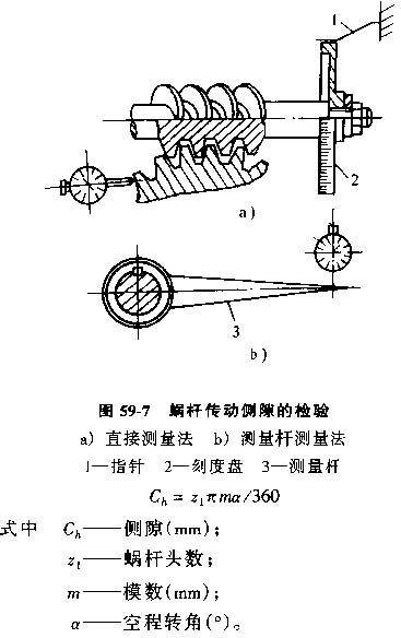 (3)側(cè)隙的檢驗(yàn)和調(diào)整,蝸桿副的最小法向側(cè)隙值見(jiàn)表59-11。