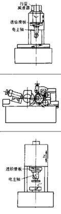 磨頭上下往復移動和橫向移動,工作臺回轉。占地小。便于短粗工件裝卸,調整和加工。但機床結構較復雜 |