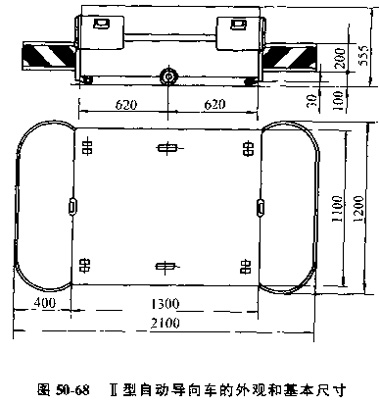 目前應用較多的是Ⅱ型自動導向車圖50-68所示是這種小車的外觀和基本尺寸。