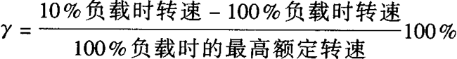 配有控制裝置的調(diào)速電動機(jī)的轉(zhuǎn)速-轉(zhuǎn)矩特性曲線,如圖2所示。按照控制器的轉(zhuǎn)速變化率定義是當(dāng)電動機(jī)自10%負(fù)載到額定負(fù)載范圍內(nèi)變動時,控制裝置能根據(jù)測速發(fā)電機(jī)信號自動調(diào)整勵磁,使輸出轉(zhuǎn)速基本上維持恒定。用以表征轉(zhuǎn)速-轉(zhuǎn)矩曲線的參數(shù)是轉(zhuǎn)速變化率γ 其定義為