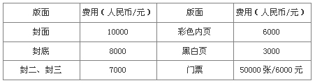 標(biāo)準(zhǔn)展位 國(guó)內(nèi)企業(yè):3M×3M 5200人民幣(主通道兩側(cè)加價(jià)20%) 國(guó)外企業(yè):3M×3M 1800美元(主通道兩側(cè)加價(jià)20%) 標(biāo)準(zhǔn)展位配備: 三面展板、楣板、一張洽談桌、兩把折疊椅、兩只射燈、廢紙簍及5A 電源插座各一個(gè)。 室內(nèi)光地 國(guó)內(nèi)企業(yè):500元/平方米 (不少于36平方米,主通道兩側(cè)加價(jià)20%) 國(guó)外企業(yè) :180美元/平方米 (不少于36平方米,主通道兩側(cè)加價(jià)20%) 注:展臺(tái)特別裝修,特裝管理費(fèi)由參展商自理 研討會(huì)及會(huì)刊廣告:
