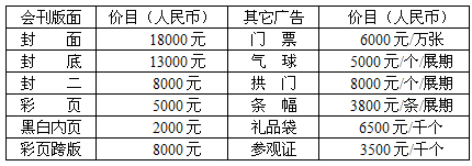 A區(qū):國內(nèi)企業(yè) RMB 7500/展位/展期 光地:國內(nèi)企業(yè) RMB 760/m²/展期 B區(qū):國內(nèi)企業(yè) RMB 6800/展位/展期 光地:國內(nèi)企業(yè) RMB 680/m²/展期 境外企業(yè) USD 1600/展位/展期 光地:境外企業(yè) USD 160/m²/展期 2、標(biāo)準(zhǔn)展位費(fèi)用:包括展出場(chǎng)地、三面展板,楣板1塊,洽談桌1張,椅子2把,射燈2盞,220V插座一只;雙開口展位加收10%的展位費(fèi)用。(光地:36㎡起租,展商需自行設(shè)計(jì)及布置展位)