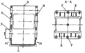 以刀庫中的鉆頭為校正工具,并使主軸以1000r/min的速度旋轉(zhuǎn),在兩側(cè)F面水平基準(zhǔn)線起止處鉆頭微切工件表面進(jìn)行試切,根據(jù)試切點與基準(zhǔn)線的相對位置,確定工件左右中心線是否在同一水平上,校正號工件F面兩側(cè)水平后,工作臺旋轉(zhuǎn)90°位置,采用同樣的方法校正工件B、C兩面基準(zhǔn)線。最后移動Z軸,校正工件H面中心基準(zhǔn)線,看劃的線是否在中心上,如果不在,松或緊夾具上的調(diào)整螺栓5,微調(diào)工件位置,直到校正為止。各基準(zhǔn)線均校正好后,用壓板1將工件壓緊。