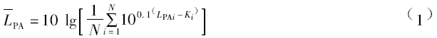 LPAi——第i測點(diǎn)的A計(jì)權(quán)聲壓級,dB(A)。