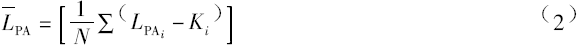 當(dāng)各測點(diǎn)的A計(jì)權(quán)聲壓級之差不超過5dB時,可由式2計(jì)算LPA: