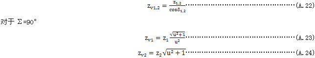 按式(A.37)與式(A.38)算出的當量圓柱齒輪的重合度,對承載能力計算是重要的。但上述重合度可能偏離按錐齒輪實際尺寸算的重合度。