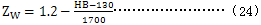 HB——齒輪副中較軟齒輪輪齒面的布氏硬度值;當(dāng)HB<130時,取ZW=1.2;當(dāng)HB>470時,取ZW=1;當(dāng)大小輪有相同的硬度時,取ZW=1.0。