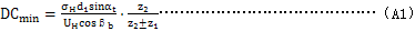 A2滲碳淬火齒輪分度圓處最小有效硬化層層深度DCmin,可根據(jù)接觸載荷引起最大剪切應(yīng)力的深度計(jì)算,計(jì)算公式見式(A1)。
