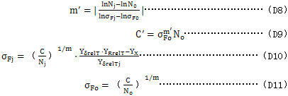 式中:Nj、σFj、YδrelTj的下標j表示靜強度時的值,見圖D1。