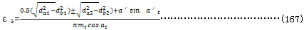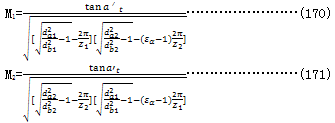 式中da1(da2),db1(db2),Z1(Z2)分別為小輪(大輪)的齒根圓、基圓直徑和齒數(shù);a′t為端面分度圓嚙合角,見(jiàn)式(160);εa為端面重度,見(jiàn)式(167)。