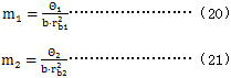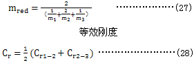 其中m1 ,m2分別表示小輪及大輪化到嚙合線上的單位齒寬當(dāng)量質(zhì)量,kg/mm。