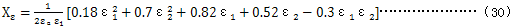 表中:ε1、ε2——小輪、大輪的齒頂重合度,由公式(25)及(26)確定;