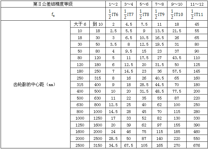 表10中心距極限偏差±fa