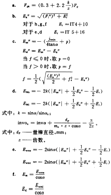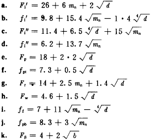 B2.1本附錄規(guī)定的有有傳動項(xiàng)目的公差或極限偏差的計(jì)算式、數(shù)值如下: