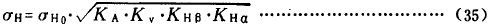 錐齒輪節(jié)圓處的計算接觸應(yīng)力σH按下式確定: