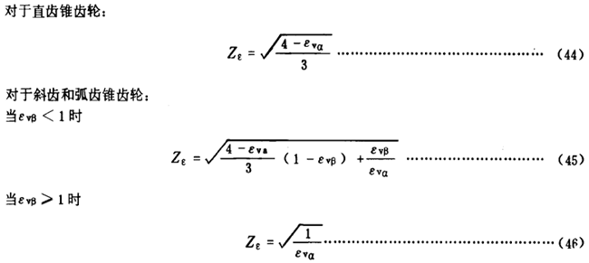 重合度系數(shù)Zε是考慮重合度對單位齒寬載荷影響的系數(shù)。其值可按式(44)、(45)、(46)計算或由圖6查取。