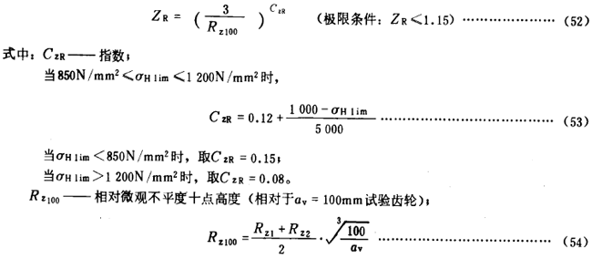 齒面粗糙度——其影響以粗糙度系數(shù)ZR考慮。