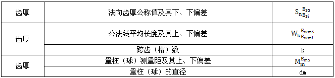 表1-142齒厚的向種檢驗方法在表格中的標注示例