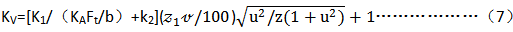動載系數(shù)KV是考慮大、小齒輪嚙合振動產(chǎn)生的內(nèi)部附加動載荷影響的系數(shù),其值可由下式計算: