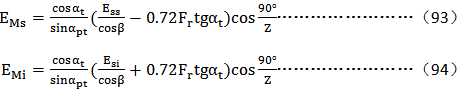 對量柱測量齒距(M值)偏差的測量結(jié)果ΔEM應(yīng)用設(shè)計圖樣規(guī)定的量柱測量距極限偏差EMs、EMi對其進行評定。當(dāng)設(shè)計圖樣未作規(guī)定時,應(yīng)將圖樣規(guī)定的齒厚極限偏差Ess、Esi按公試(91)、(92),(93),(94)換算為EMs、EMi;也可以將測得的ΔEM按公試(95),(96)(97),(98)換算為ΔEss、ΔEsi,用Ess、Esi對其進行評定。