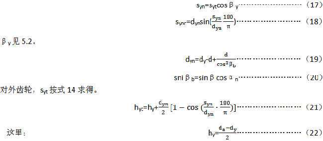 控制相配齒輪的齒厚是十分重要的,以保證它們?cè)谝?guī)定的側(cè)隙下運(yùn)行。有些情況下,由于齒頂高的變位,要在分度圓直徑d處測(cè)量齒厚不太容易,故而用一個(gè)計(jì)算式給出在任何直徑dy處齒厚s,見(jiàn)圖16,推薦選取dy=d+2mnx。