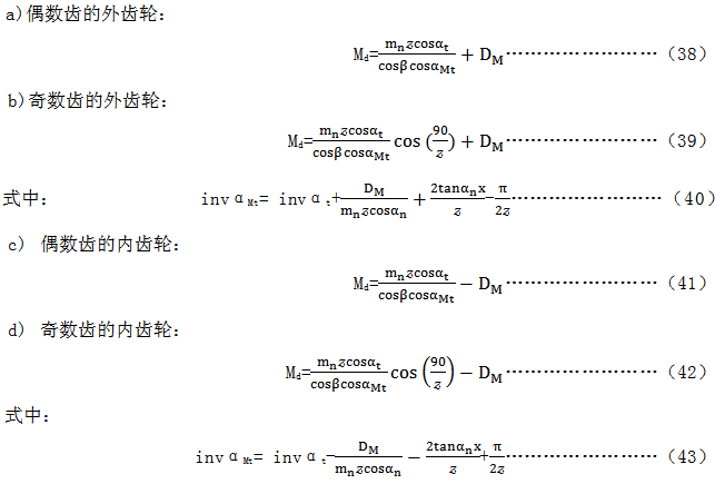 Md的公稱(chēng)值中不包括側(cè)隙的允許偏差,應(yīng)從公稱(chēng)值減去上偏差Eyns和下偏差Eyns,Eyns和Eyni由下列方程式轉(zhuǎn)換(見(jiàn)7.2)。
