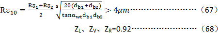 正如ISO6336-2:1996中所述,ZL是考慮潤滑劑名義黏度的影響,ZV是考慮齒面速度的影響,ZR是考慮表面粗糙對嚙合區(qū)潤滑油膜形成的影響。本標準采用的是ISO6336-2:1996的C法。