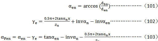 假定用一個(gè)特殊齒條的齒形系數(shù)值近似地替代內(nèi)齒輪的齒形系數(shù)。該齒條的齒廓是基本條齒廓的一種改型,它能展成內(nèi)齒輪的精確配對(duì)齒輪的法向齒廓(包括齒頂圓與齒根圓),齒頂載荷角為αn。