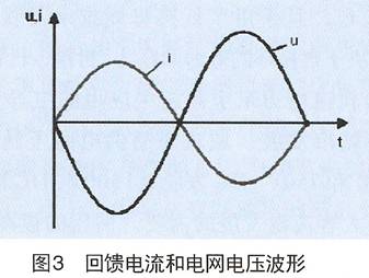 此時(shí)能量由電機(jī)通過逆變側(cè)、整流側(cè)流向電網(wǎng)。變頻器工作在二、四象限。輸入電抗器的主要功能是電流濾波。回饋電流和電網(wǎng)電壓波形如圖3所示:
