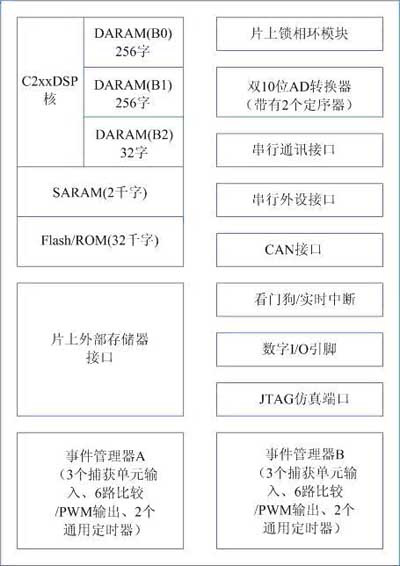 圖1 TMS320Lx240x系列DSP控制器總體結(jié)構(gòu)