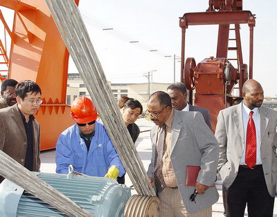 國(guó)外客商參觀大港中成機(jī)械制造工程生產(chǎn)現(xiàn)場(chǎng)。