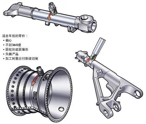 許多原本很難制造、需要在不同設(shè)置和機器上采用數(shù)種不同加工工序的零件,采用車銑工藝就能以高效率制造出來。當(dāng)零件形狀不對稱,或由于平面、型腔及障礙物等原因,零件表面的圓度達不到360°時,這種工藝便顯示出其優(yōu)越性。