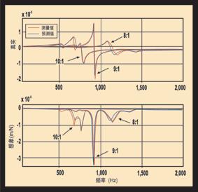 圖3:某些工程師可能將這些圖看成是頻率響應圖的“真實”和“想象”成分。但是這里不需要理解它是什么含義。圖形表示在某個給定的應用場合以不同懸伸長度使用同一把刀具發(fā)生顫振的趨勢。振幅較高意味著發(fā)生顫振的趨勢較高。這些圖表示,在將長徑比從8:1增加到9:1時,增加懸伸長度會增加顫振的趨勢。但是,當這種比例增加到10:1時,這種趨勢又倒過來了,此時卻產生了更加穩(wěn)定的懸伸值。