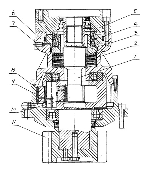 | 一種回轉(zhuǎn)減速機(jī),在殼體內(nèi)有常閉摩擦制動機(jī)構(gòu)和行星減速機(jī)構(gòu),殼體包括馬達(dá)座、油缸體、摩擦片座、行星輪架軸承座和內(nèi)齒殼體座等部分,其特征是其中油缸體、摩擦片座和行星輪架軸承座三部分為一件零件。 |