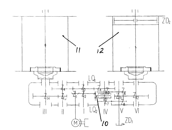 | 起升變幅減速機(jī),有驅(qū)動(dòng)電機(jī)、主起升卷筒、動(dòng)臂變幅卷筒,驅(qū)動(dòng)電機(jī)的輸出齒輪分別與主起升卷筒、動(dòng)臂變幅卷筒之間設(shè)有齒輪變速機(jī)構(gòu),驅(qū)動(dòng)電機(jī)的輸出齒輪與動(dòng)臂變幅卷筒之間的齒輪變速機(jī)構(gòu)還帶有同步器。省去了主起升卷筒、動(dòng)臂變幅卷筒之間單獨(dú)設(shè)置的齒輪傳動(dòng)機(jī)構(gòu)構(gòu)成的補(bǔ)償裝置,利用驅(qū)動(dòng)電機(jī)的輸出齒輪和其分別與主起升卷筒、動(dòng)臂變幅卷筒之間設(shè)置的齒輪變速機(jī)構(gòu),構(gòu)成主起升卷筒與動(dòng)臂變幅卷筒之間的補(bǔ)償機(jī)構(gòu),通過(guò)起升變幅減速機(jī)的機(jī)構(gòu)互動(dòng)、聯(lián)動(dòng),進(jìn)行工作動(dòng)作的同時(shí)進(jìn)行了相互的補(bǔ)償。 |