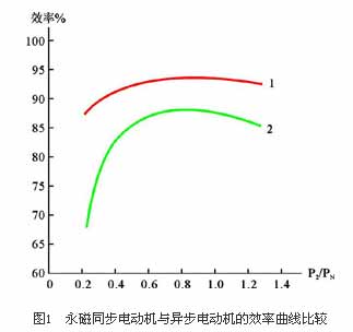 該電機(jī)不需要無功勵磁電流,可顯著提高功率因數(shù)(可高達(dá)1),并減少了定子電流和定子電阻損耗。在電機(jī)穩(wěn)定工作時,轉(zhuǎn)子和定子磁場同步運行,轉(zhuǎn)子無感應(yīng)電流,也就不存在轉(zhuǎn)子電阻損耗,兩者使電動機(jī)效率提高2%~8%,而且該電機(jī)負(fù)載率(P2/PN)在25%~120%范圍內(nèi)均可保持較高的效率和功率因數(shù),使輕載運行時節(jié)能效果更顯著。