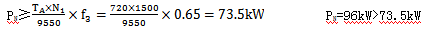 從額定功率表中選擇:類型SLB3,規(guī)格9,對應(yīng)的PN=96kW
