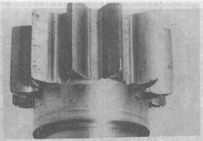 輪齒被剪斷的斷口面類似于機加工過的表面。這種形式的損傷絕大多數限于嚙合齒輪副中材料強度相對較低的齒輪輪齒上,且輪齒剪斷幾乎都是由于一次嚴重過載所致。
