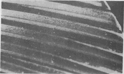 齒面上垂直于滑動方向的微小皺紋。這些小皺紋本身也是波狀的,而不是直的,看上去其形狀如同風吹沙土,水沖泥漿一樣,只是規(guī)模小得多而已。