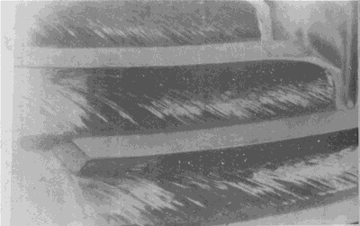 在大齒輪齒頂形成的淬火裂紋(這種裂紋通常都在這個區(qū)域出現)。