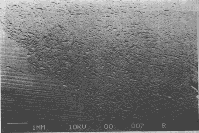 齒面的上齒面和下齒面都有金屬移失,而在齒面上節(jié)曲面附近表面開始呈現出一條連續(xù)的線帶。